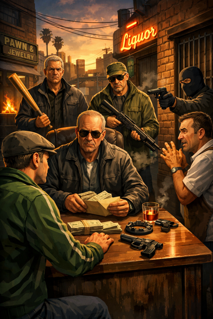 Wir vom Rentner Club führen gezielte Überfälle durch, wenn sich daraus ein klarer strategischer Vorteil für uns ergibt. Im Fokus stehen dabei Transporte und Aktivitäten rivalisierender Gruppierungen, die wir gezielt auswählen und sorgfältig vorbereiten.
